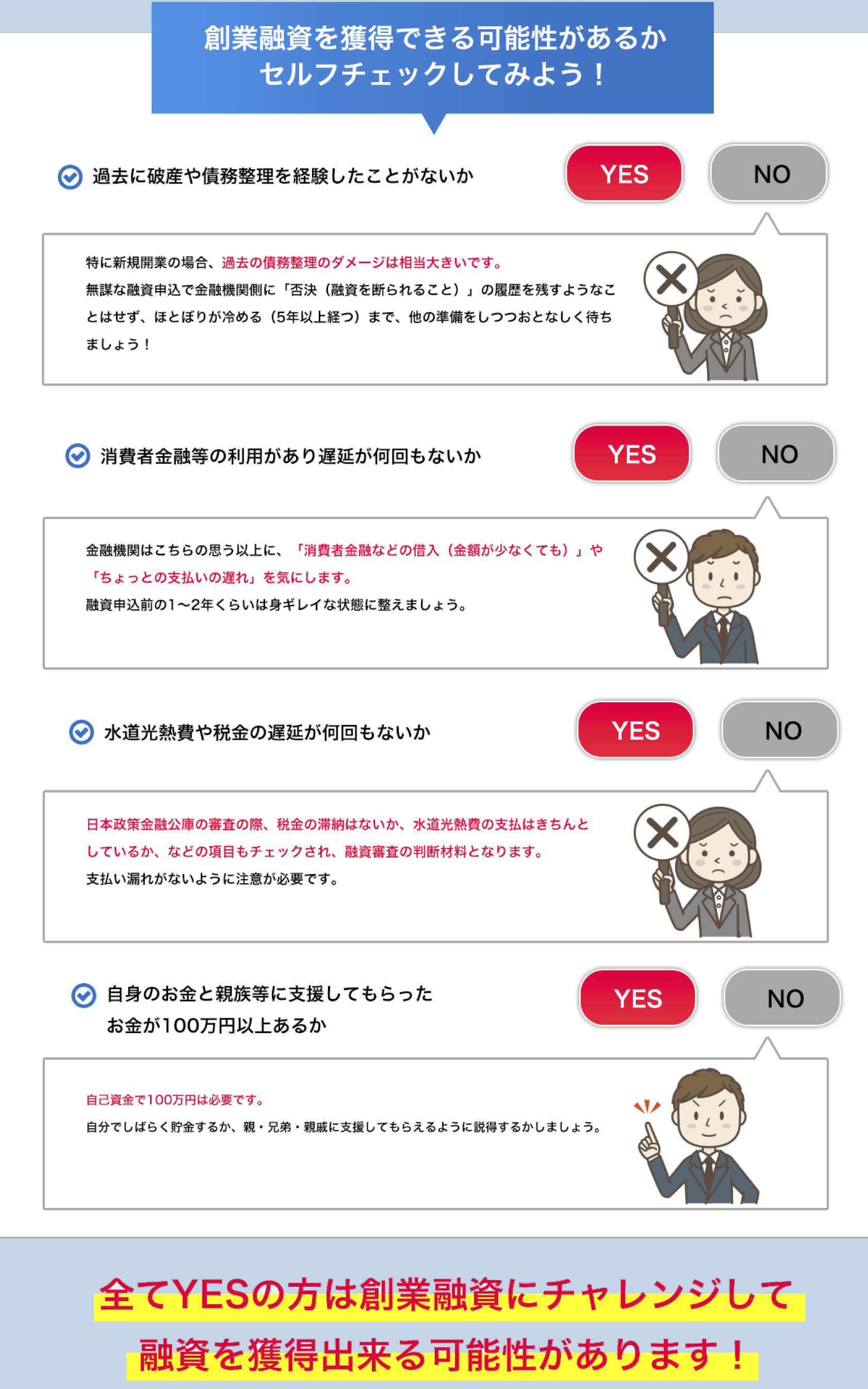※会社設立前に融資の事前審査をするため、無駄な会社設立も防げます。